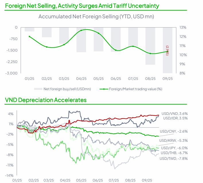 - Các luồng vốn đầu tư vốn chủ sở hữu (ECM) mạnh mẽ trong khu vực, đặc biệt là ở Trung Quốc, có thể làm phân tán sự chú ý và vốn của nhà đầu tư toàn cầu khỏi Việt Nam. Trung Quốc đã thu hút khoảng 21 tỷ USD tiền IPO từ đầu năm 2025, và dòng vốn FII ròng vào cổ phiếu Trung Quốc đã tăng vọt lên 27,3 tỷ USD. tăng vọt lên 27,3 tỷ USD.