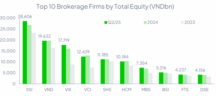 Chú thích: Top 10 CTCK theo VCSH (tỷ VND)