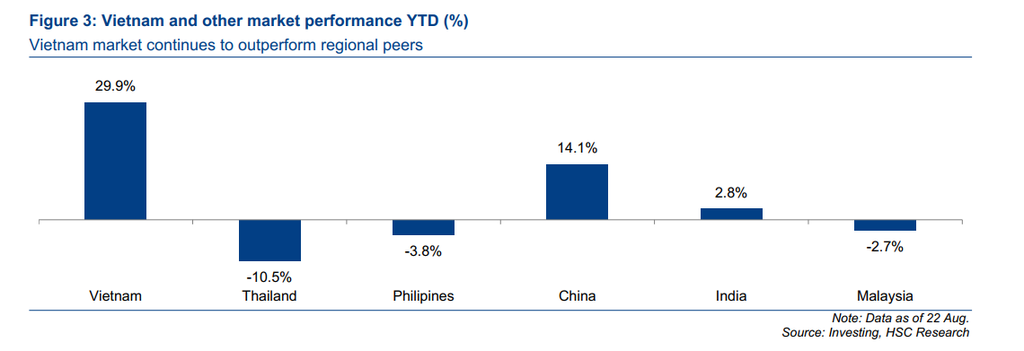 Thị trường chứng khoán Việt Nam đang ở giai đoạn sôi động nhất trong nhiều năm. VN Index tăng 27.4% từ đầu năm 2025 (YTD), vượt xa các thị trường trong khu vực, trong khi thanh khoản bình quân mỗi ngày cũng tăng hơn 38% yoy, lập kỷ lục mới.