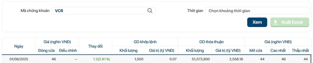 VCR - CTCP Đầu tư và phát triển du lịch Vinaconex, công ty nắm giữ dự án Cát Bà Amatina đã xuất hiện giao dịch thỏa thuận 51,573,800. Đây cũng chính là lượng cổ phiếu còn lại cuối cùng của VCG sau 2 lần thỏa thuận bán trước đó vào ngày 15.07 và 17.07. Như vậy VCG đã bán toàn bộ vốn tại VCR, thu về tổng số tiền 5.312 tỷ đồng, vừa giúp VCG hạch toán khoảng lợi nhuận đột biến trong Q3.2025 vừa giúp công ty mang về lượng tiền mặt lớn để tiếp tục đầu tư cho các dự án bất động sản hiện hữu.